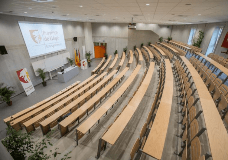 - Au rez-de-chaussée : 3 auditoires (jusqu’à 250 places) et 12 salles de classe,